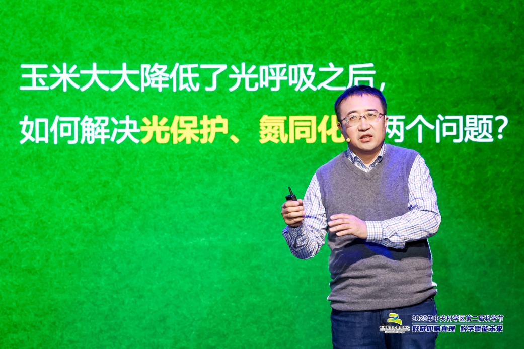 玉米身为餐桌上的“常客”,是人类离不开的重要农作物,除了“能吃”,燃料、塑料等日用品的生产也离不开它。作为农作物中出类拔萃的“产量大王”,小小的玉米粒中蕴藏着强大的生命力,也凝聚着科学家的智慧。来自中国科学院植物研究所研究员王柏臣,长期致力于光合作用的研究,用严谨的科研探索植物生长的奥秘,修理玉米光合作用的“Bug”。王老师从光合作用原理、调控蛋白等方面分享玉米产量提升背后的科研故事,现场观众受益匪浅。