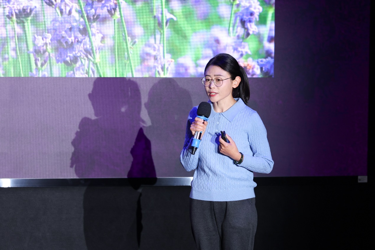 薰衣草为何能在中国绽放?答案就在伊犁河谷的独特气候,以及一代代扎根新疆的科学工作者的智慧中。李慧讲述了从20个世纪50年代开始,薰衣草在中国从引种到大面积推广的故事,特别是耐涝的‘洛神’,白色的‘天山飞雪’,开花观赏性强的‘天山精灵’等薰衣草新品种是如何育成的。李慧老师还揭示了薰衣草香味变化的秘密——花蕾期的香味能驱赶蚜虫,而盛花期能吸引蜜蜂来传粉,这个特性在未来将有机会实现绿色害虫防治。花海和雪山的美景结合,让现场观众为之惊叹。