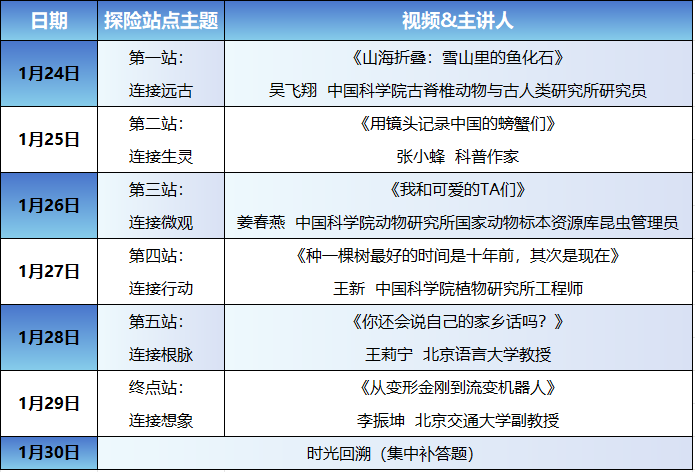 1月24日-30日,每天用同一账号进入小程序,完成当天学习活动,遇到问题,可向坐镇科学家提问(向科学家提问时间1月24-2月8日)